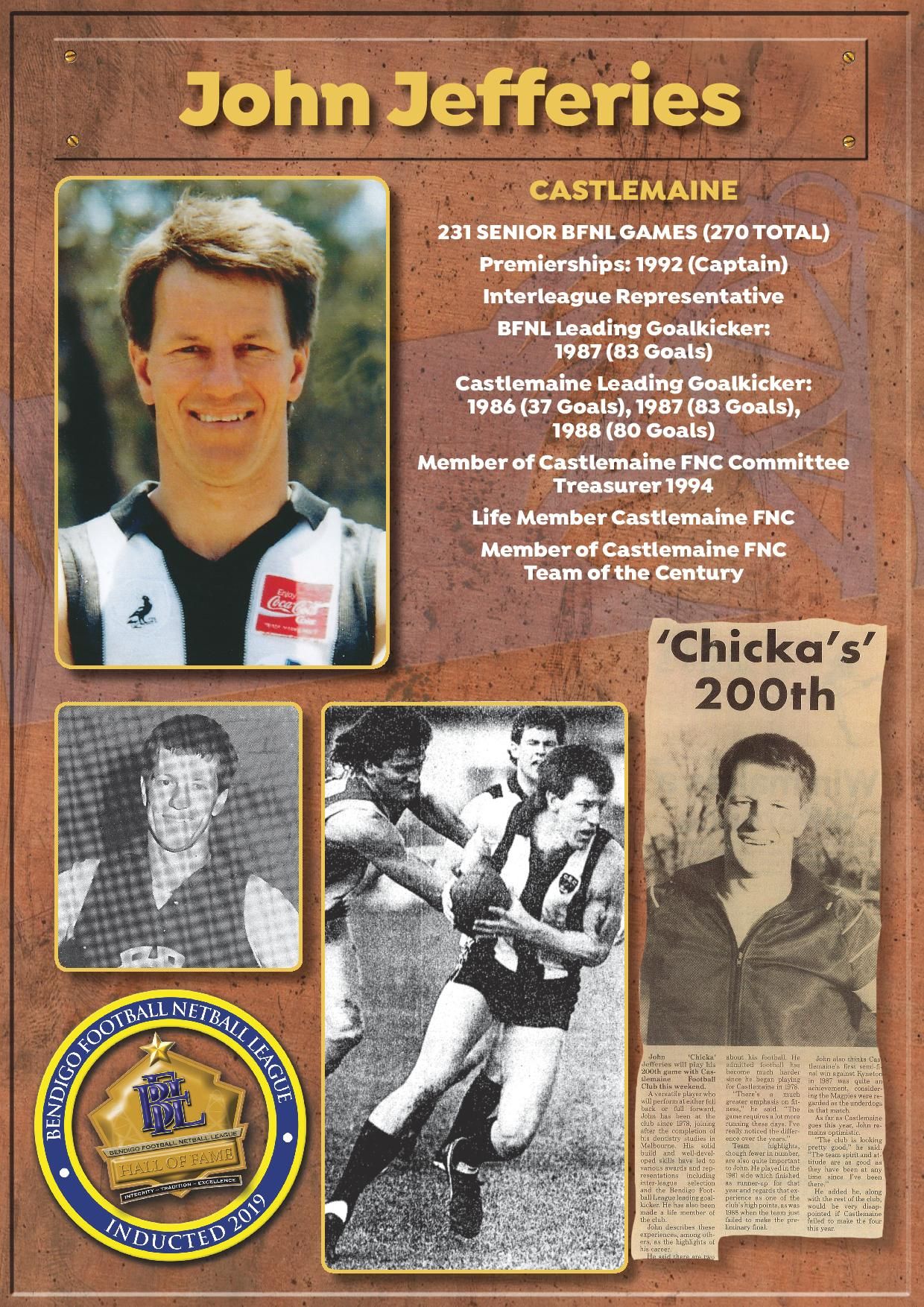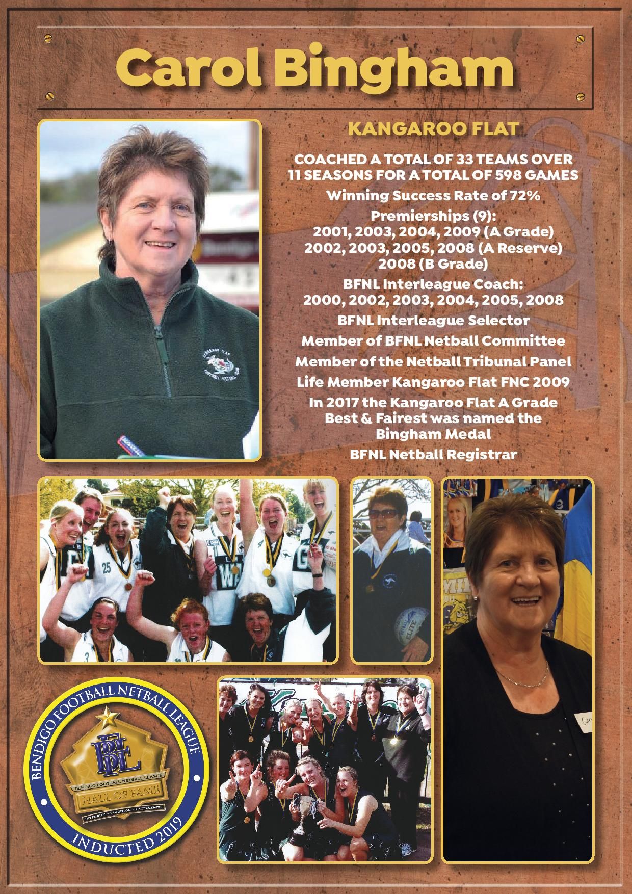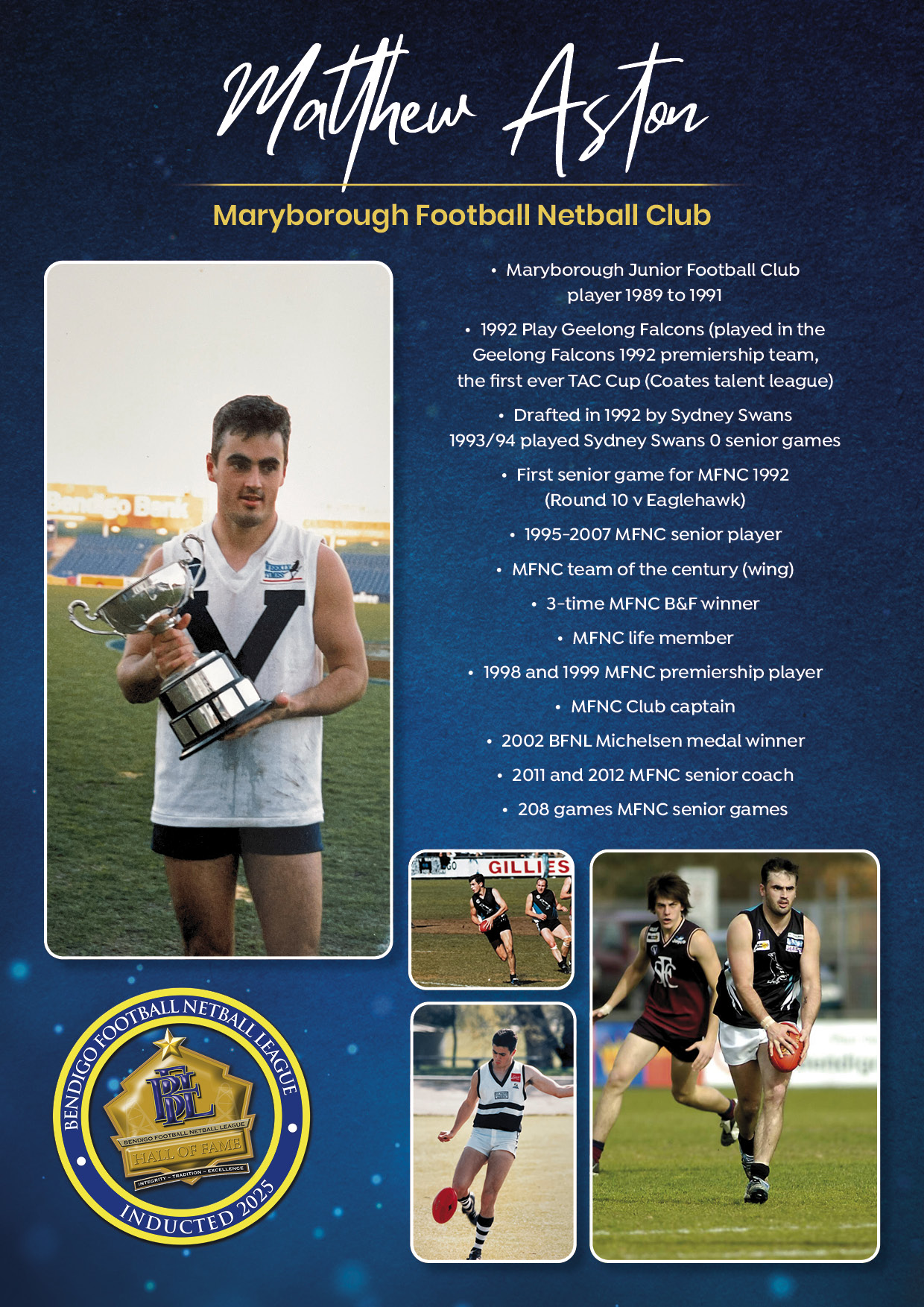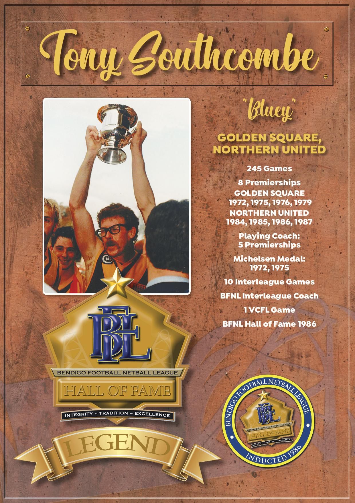 The Bendigo FNL Hall of Fame celebrates the accomplishments of outstanding players, coaches, administrators, media personalities, netballers and any others who have made substantial and distinctive contributions to the promotion of the league.