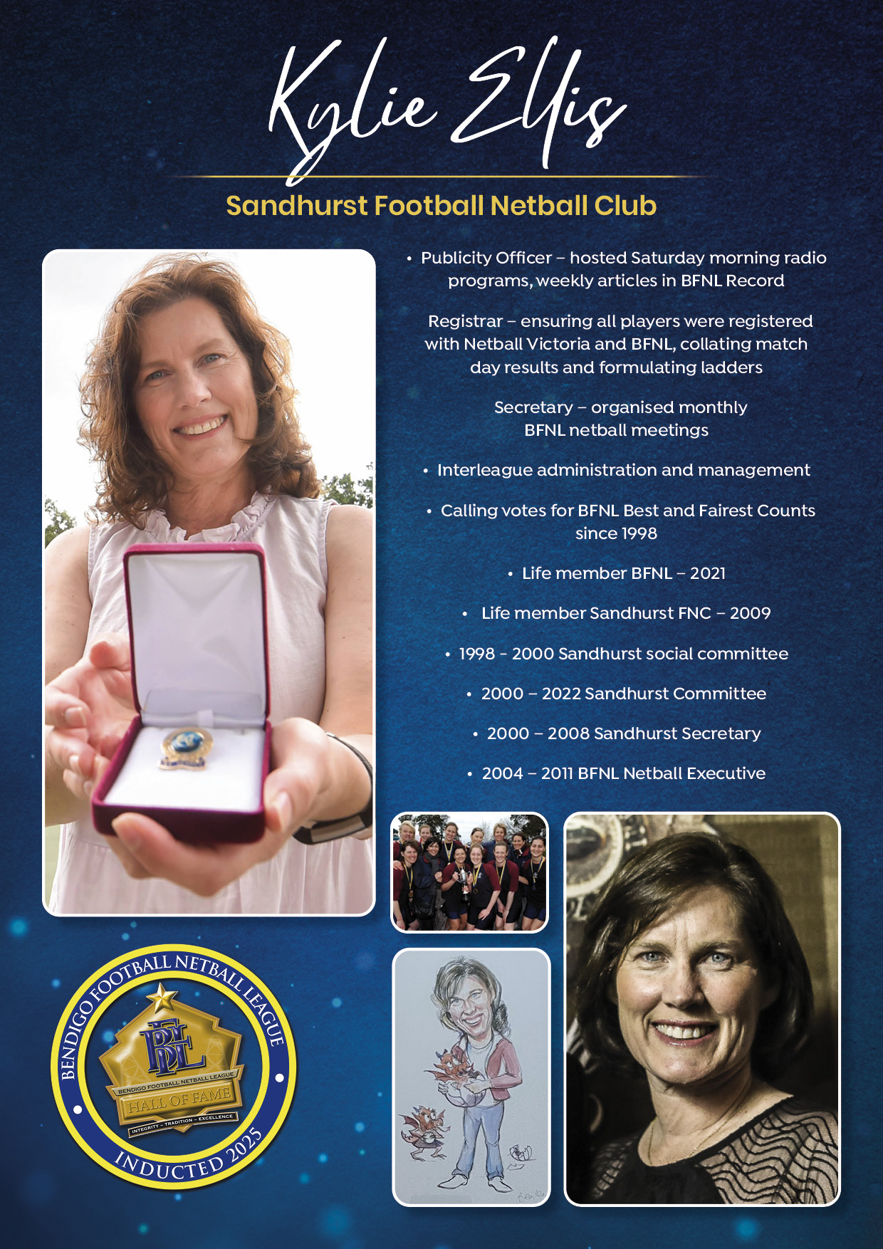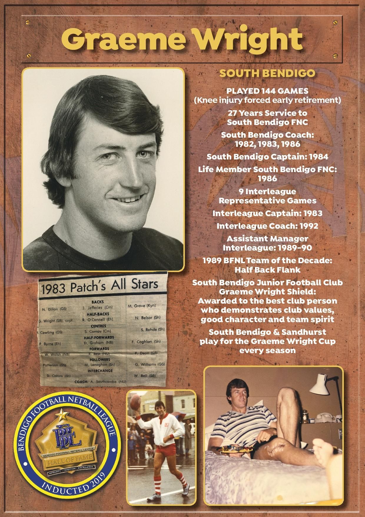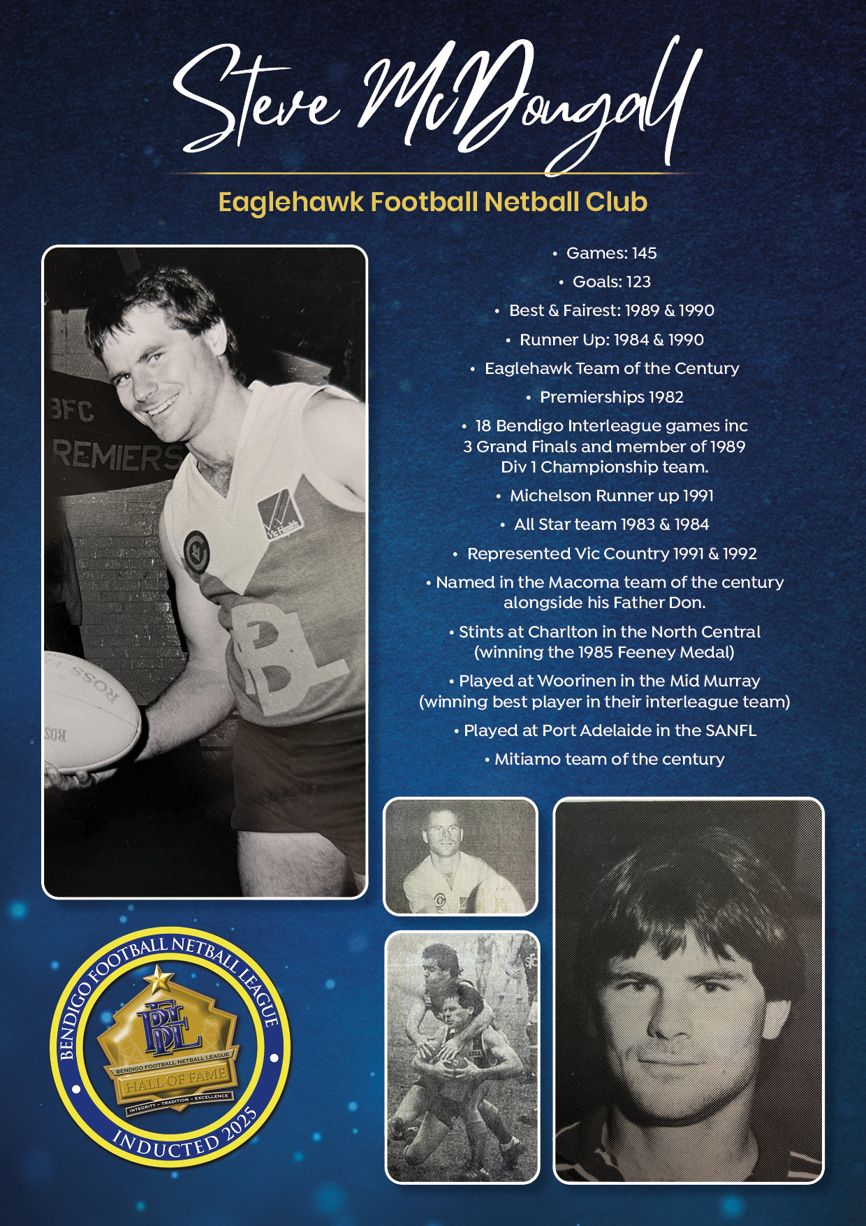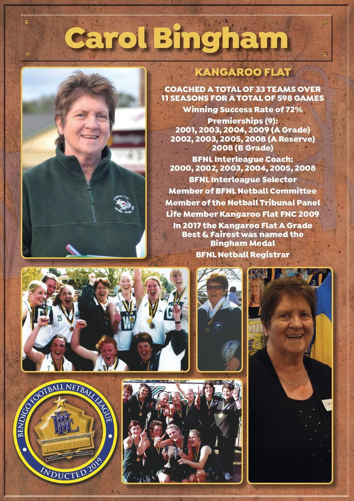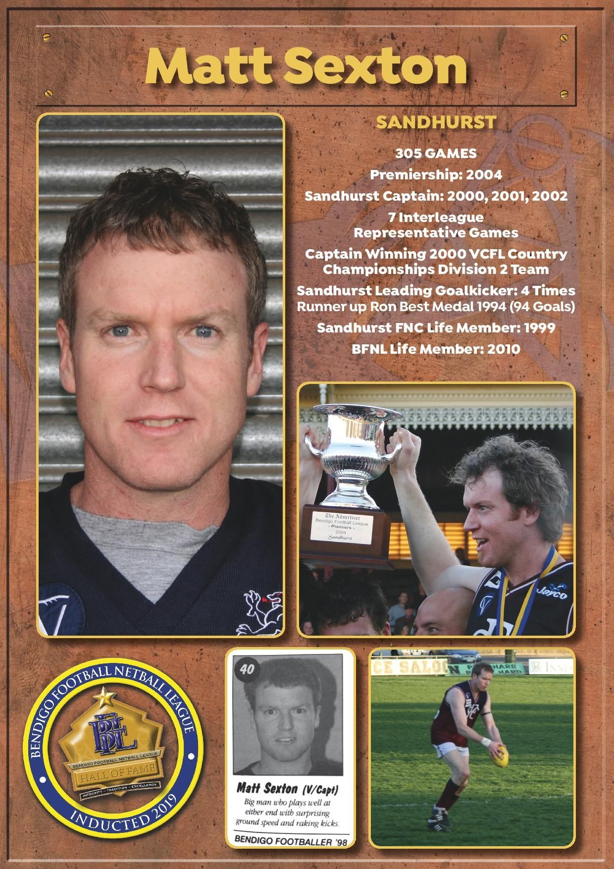 The Bendigo FNL Hall of Fame celebrates the accomplishments of outstanding players, coaches, administrators, media personalities, netballers and any others who have made substantial and distinctive contributions to the promotion of the league.