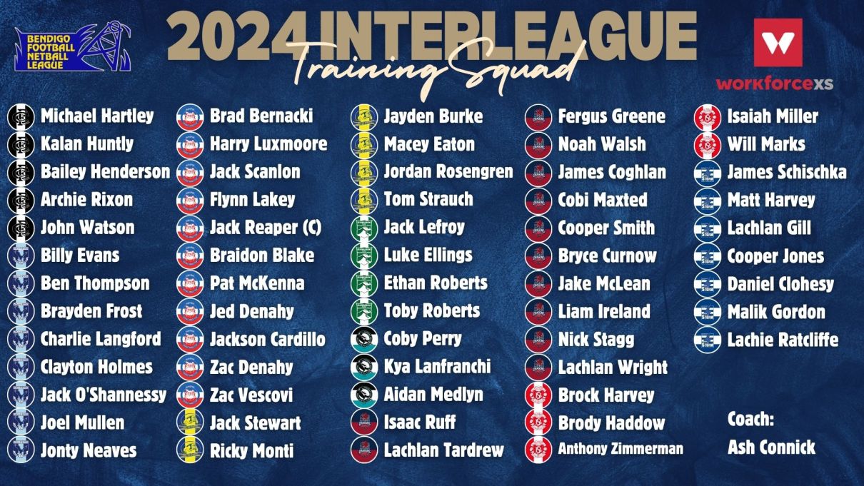 Bendigo Football Netball League (BFNL) 2024 Senior Interleague Coach Ash Connick today announced a 61-player training squad as part of the preparation for the upcoming interleague match against the Victorian Amateur Football Association (VAFA) at Elsternwick Park, Brighton on July 6.