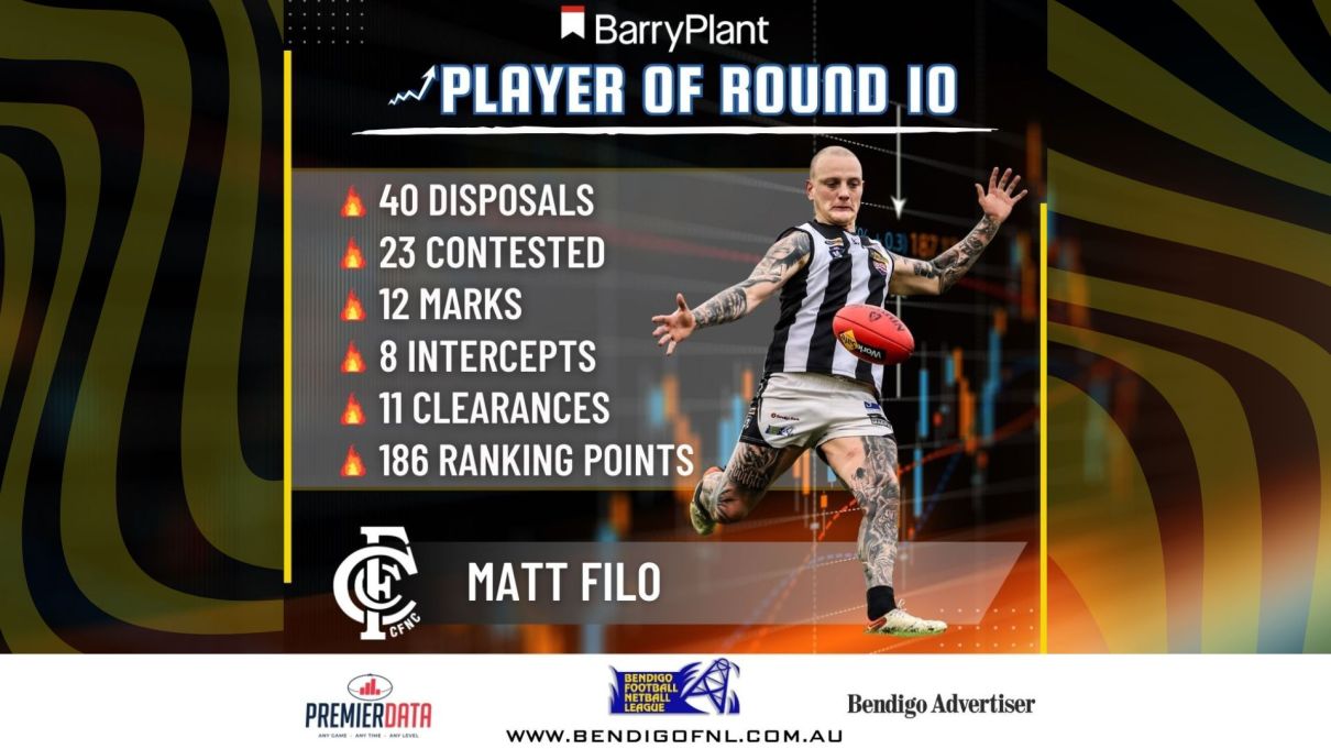 Barry Plant Bendigo Player of the Week is MATT FILO from the Castlemaine Football Netball Club