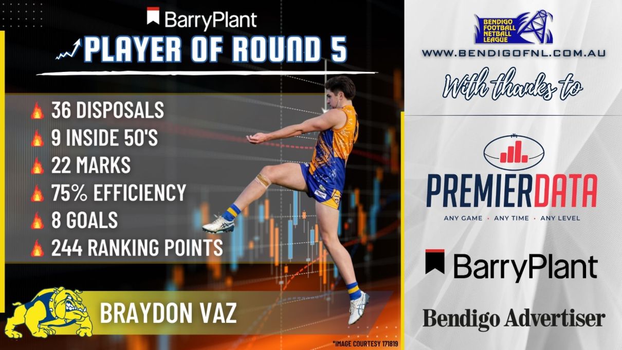 Barry Plant Bendigo Player of the Week is BRAYDON VAZ from the Official Golden Square Football & Netball Club