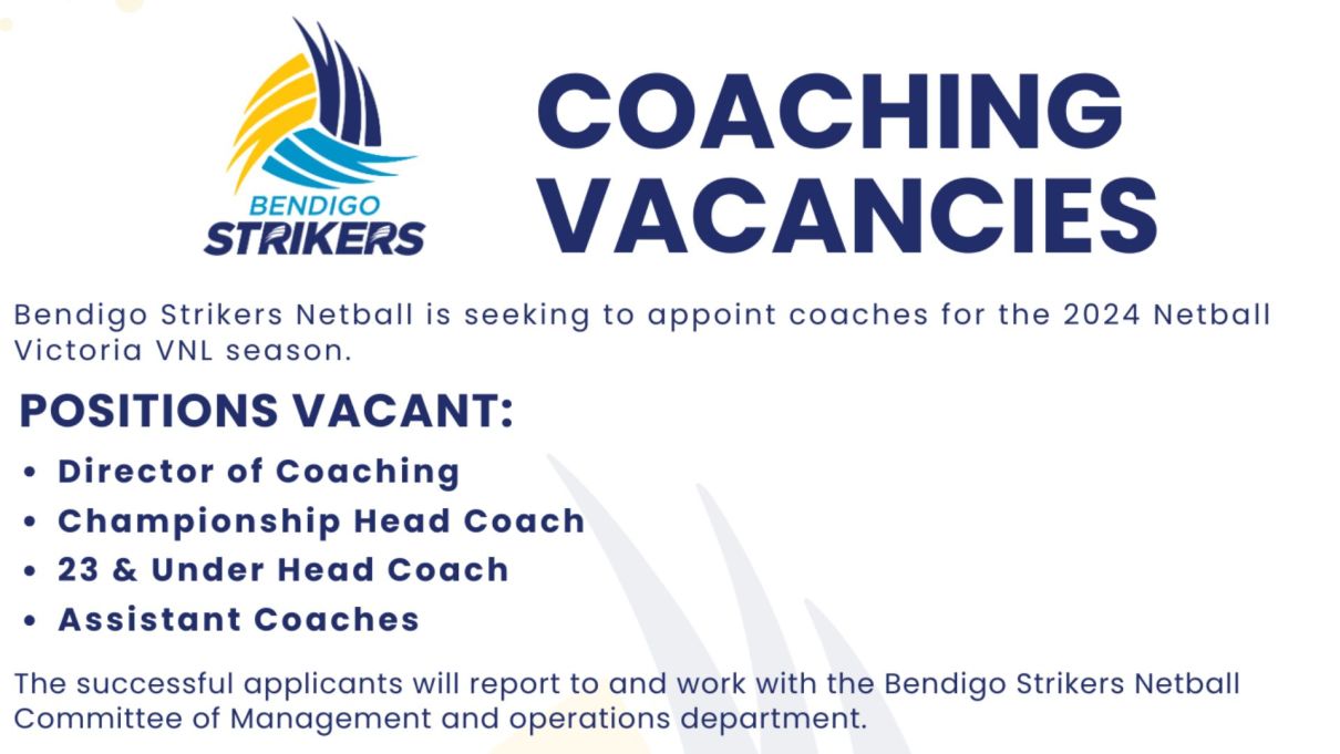 Bendigo Strikers Netball - 2024 Coaching Vacancies