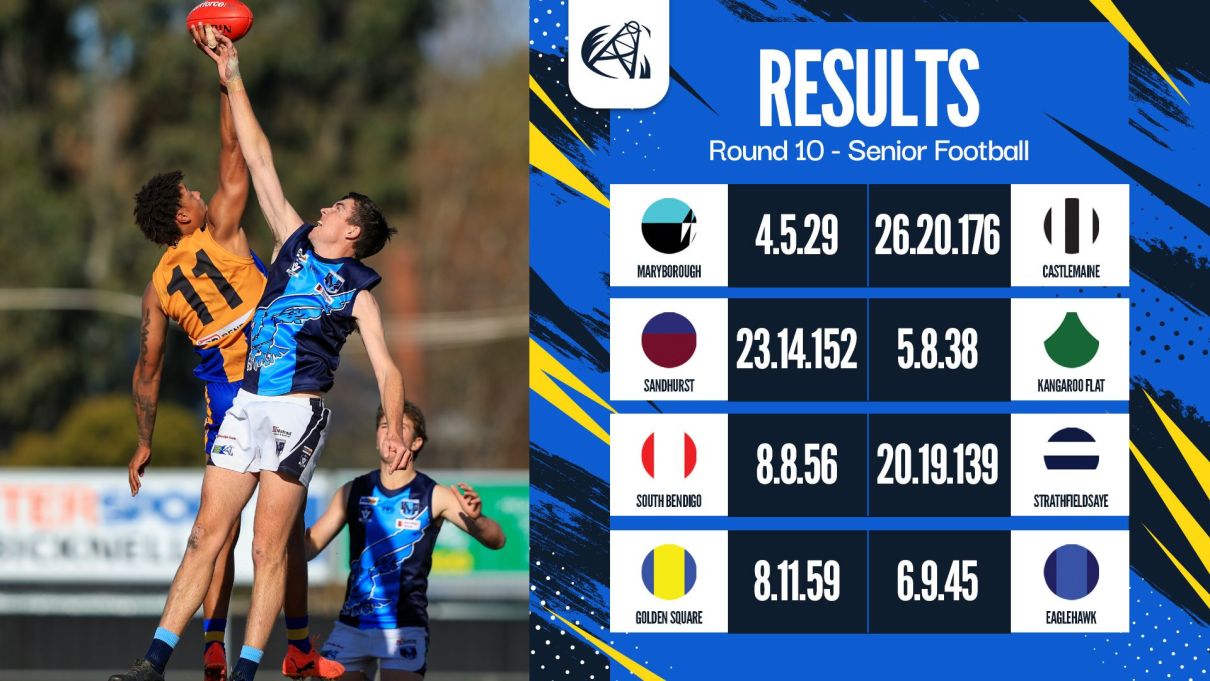 Sandhurst 328 per cent, 36 points; Gisborne 233, 28; Strathfieldsaye 176, 28; Eaglehawk 141, 20; Golden Square 124, 20; Castlemaine 105, 12; South Bendigo 71, 8; Kangaroo Flat 53, 8; Maryborough 13, 0.