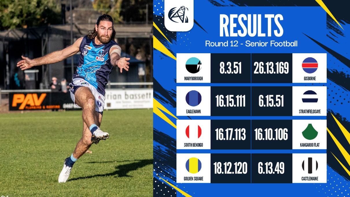 Sandhurst 293 per cent, 36 points; Gisborne 227, 36; Strathfieldsaye 155, 32; Eaglehawk 148, 24; Golden Square 127, 24; Castlemaine 103, 16; South Bendigo 71, 12; Kangaroo Flat 65, 12; Maryborough 15, 0.