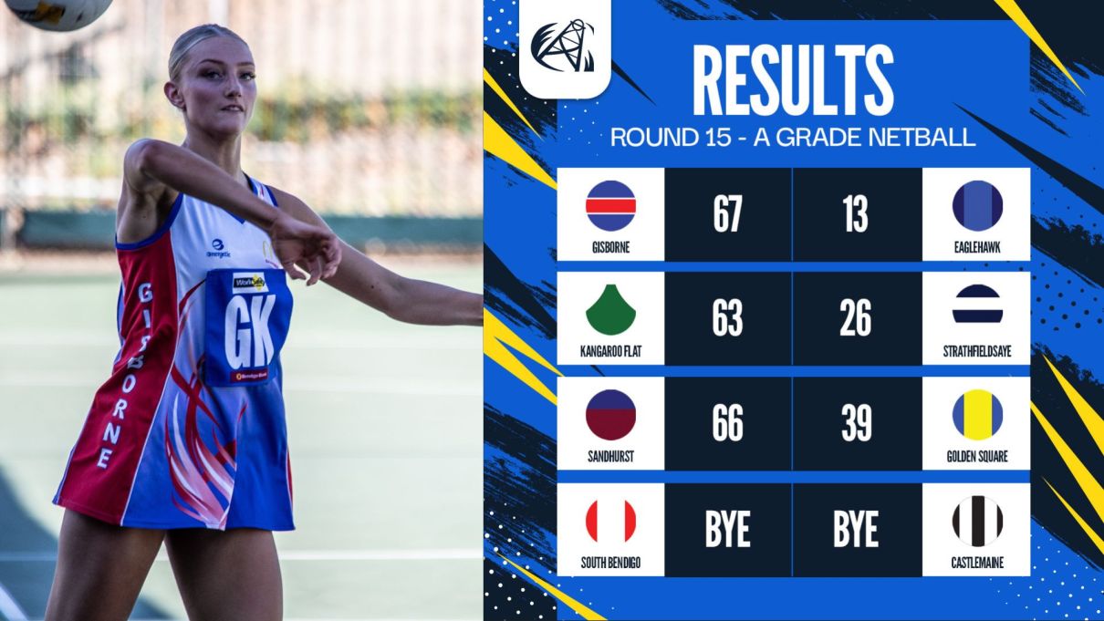 Gisborne 226 per cent, 52 points; Strathfieldsaye 134, 40; Kangaroo Flat 125, 38; Sandhurst 130, 36; Maryborough 99, 34; South Bendigo 74, 16; Castlemaine 71, 12; Eaglehawk 67, 8; Golden Square 57, 4.