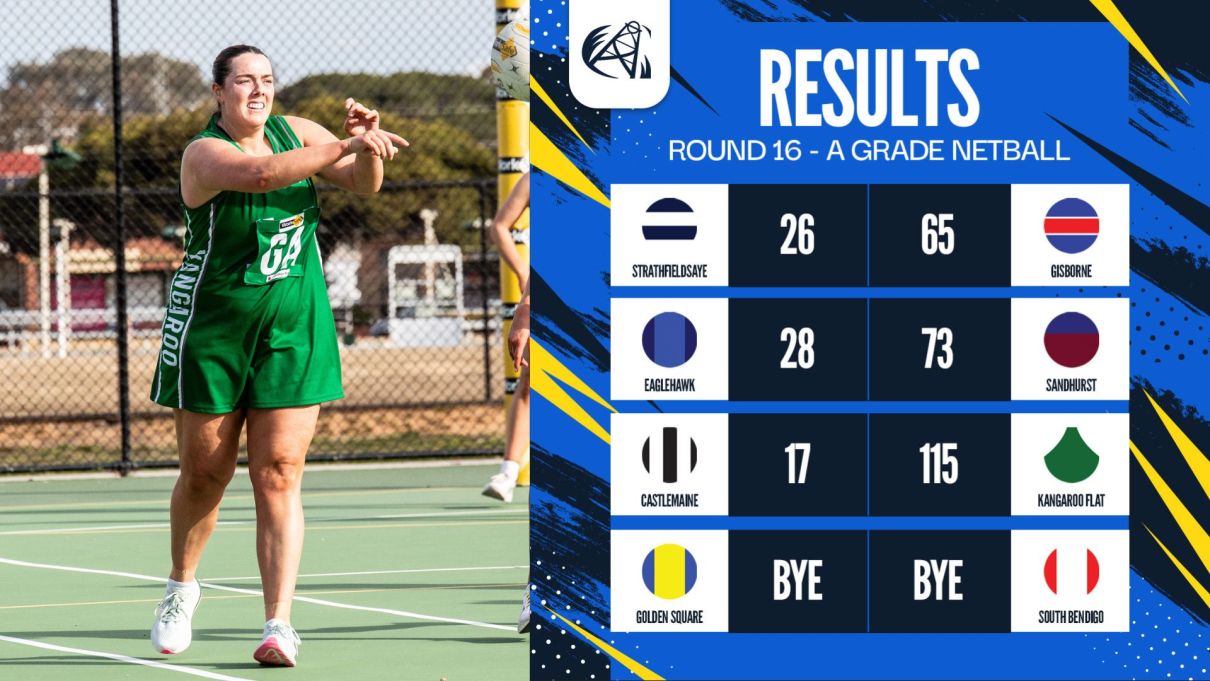 Strathfieldsaye 49 lt Gisborne 71, Eaglehawk 16 lt Sandhurst 70, Castlemaine 37 lt Kangaroo Flat 68, Golden Square 46 d Maryborough 34, South Bendigo bye.