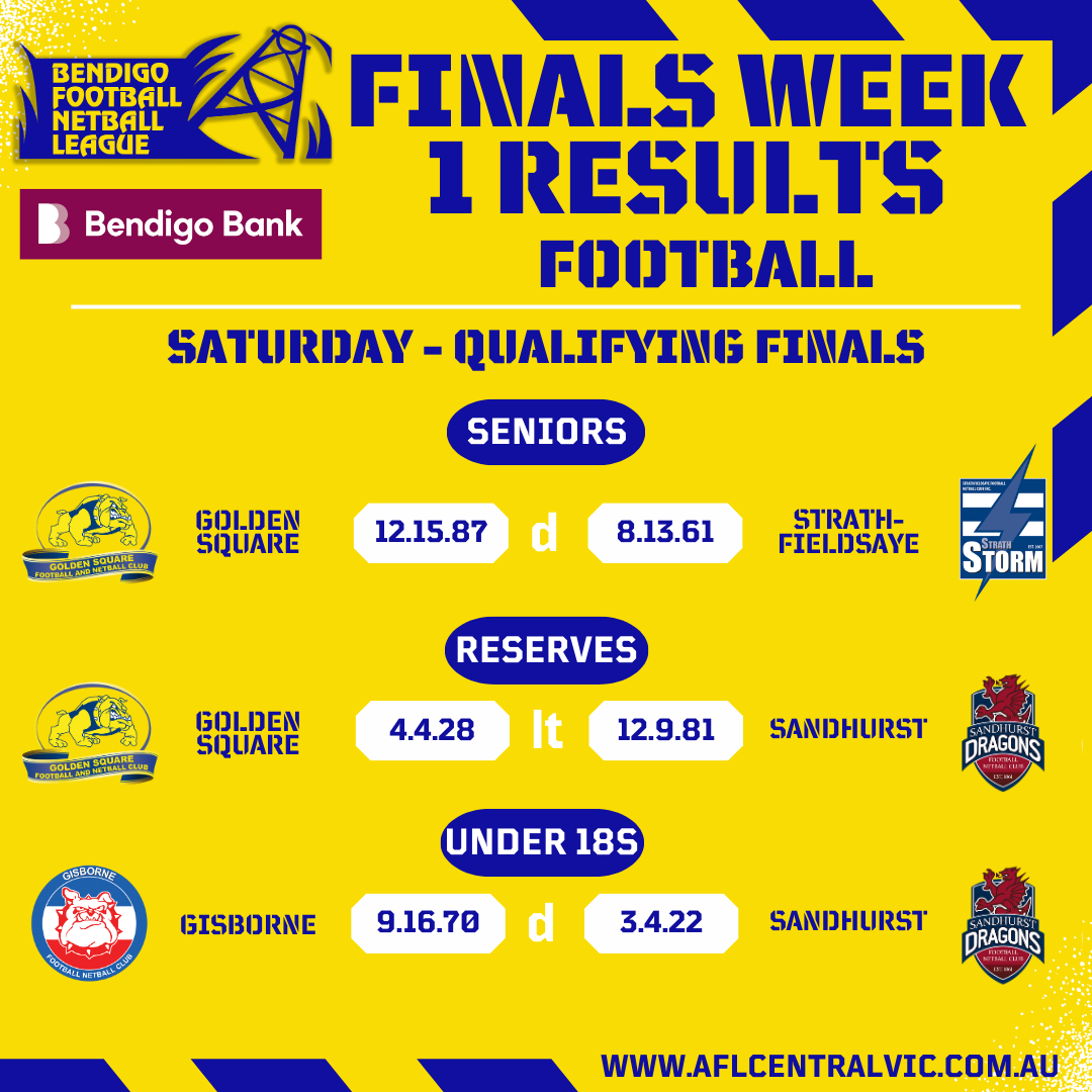 EAGLEHAWK and Golden Square were victorious in the weekend’s start to the footy finals in the Bendigo Bank Bendigo FNL season.
