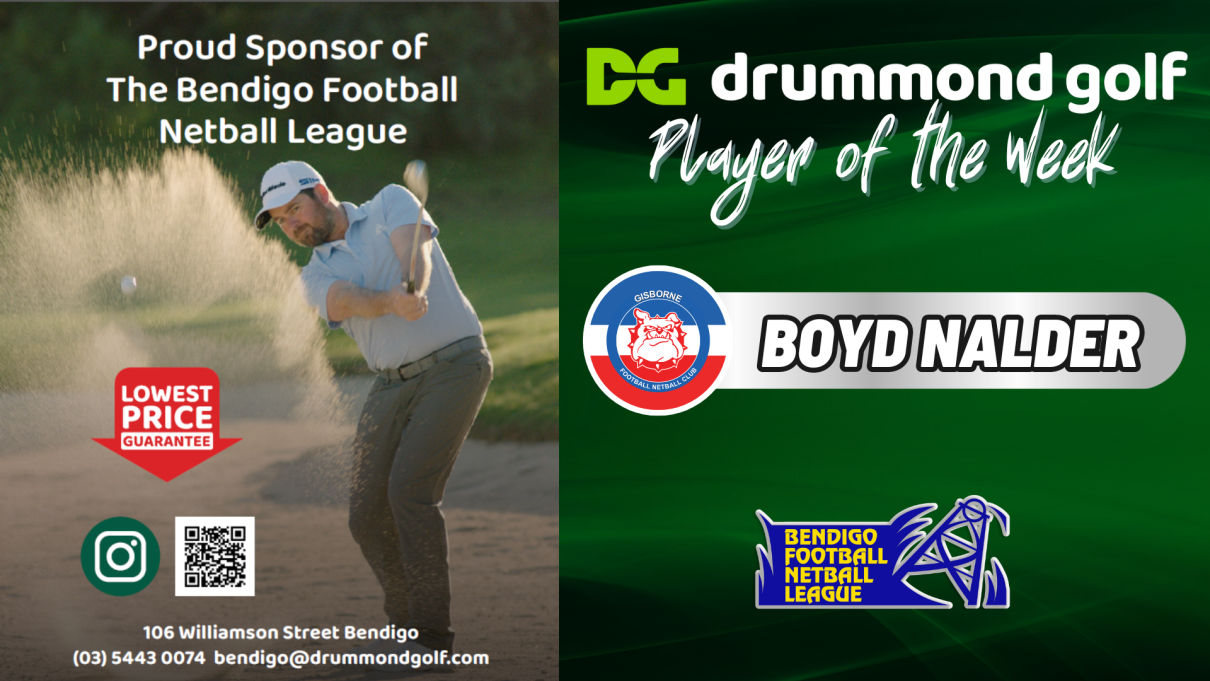 Congratulations to BOYD NALDER of the Gisborne Football Netball Club who has been selected as the Drummond Golf Reserves Player of the Week, leading the Dog's to a big victory in Round 13 🔵⚪🔴