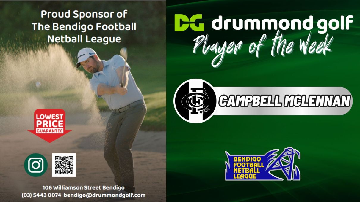 Congratulations to CAMPBELL MCLENNAN of the Castlemaine Football Netball Club who has been selected as the Drummond Golf Reserves Player of the Week.