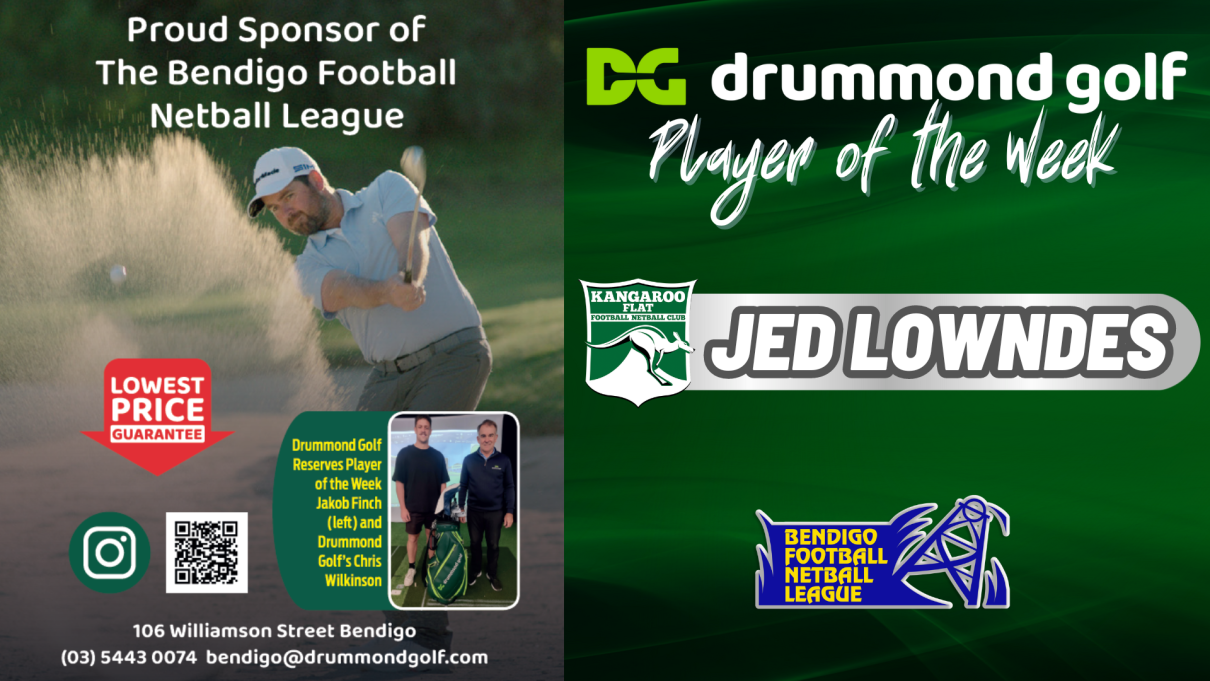 Congratulations to JED LOWNDES of the Kangaroo Flat FNC who has been selected as the Drummond Golf Player of the Week, bagging an impressive 8 majors in the Roo's big round 2 victory