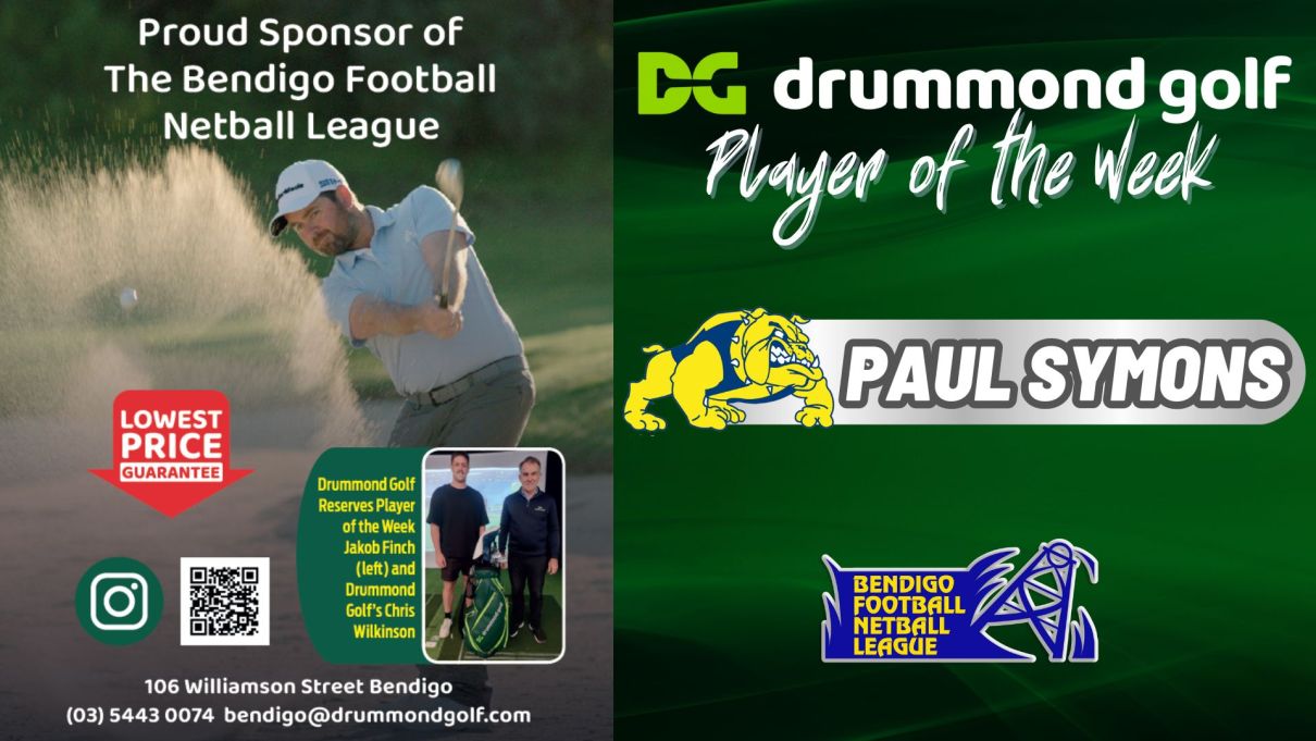 Congratulations to PAUL SYMONS of the Official Golden Square Football & Netball Club who has been selected as the Drummond Golf Reserves Player of the Week, bagging a huge 7 goals out of the team total of 13