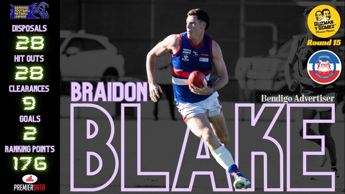 Congratulations to BRAIDON BLAKE of the Gisborne Football Netball Club who is our weekly GYG Player of the Round, brought to you by Premier Data