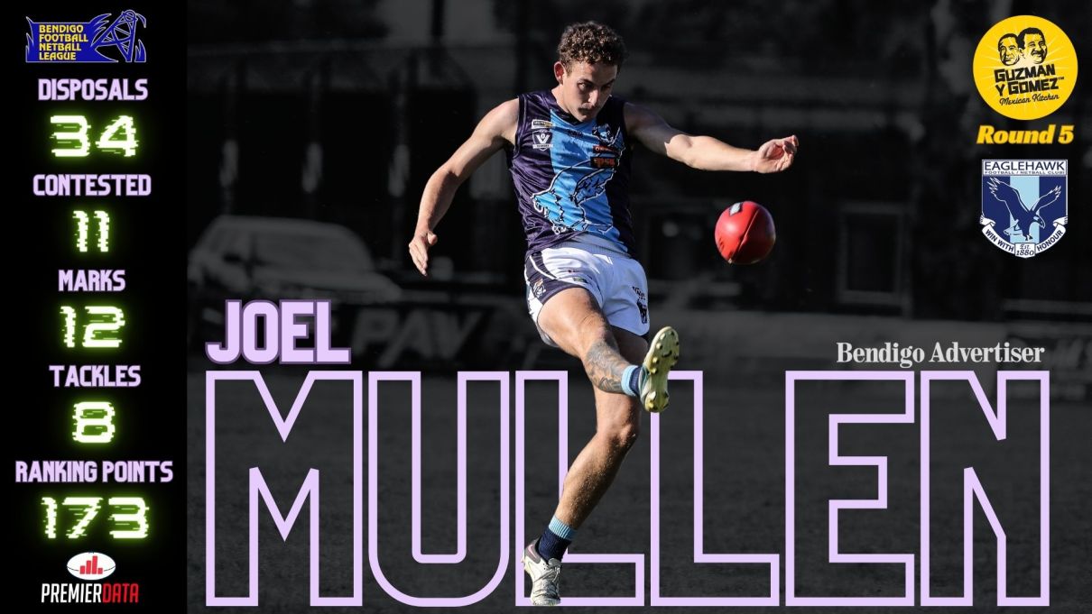 Congratulations JOEL MULLEN of the Eaglehawk Football Netball Club who is our weekly GYG Player of the Round, brought to you by Premier Data