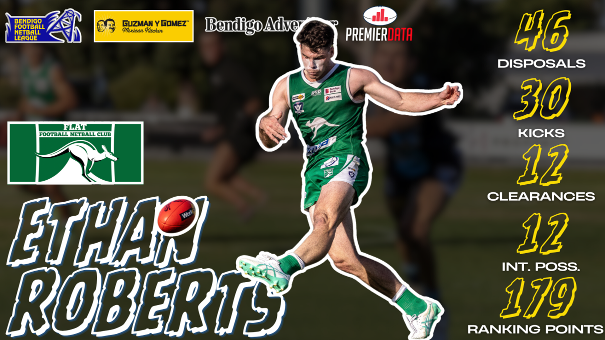 Despite the Roo's winless 2025, Roberts has always led from the front as Senior Captain and Saturday's narrow loss to Strathfieldsaye was no different with the midfielder racking up 46 touches to go along with 12 clearances and 179 ranking points in what can only be described as trying conditions