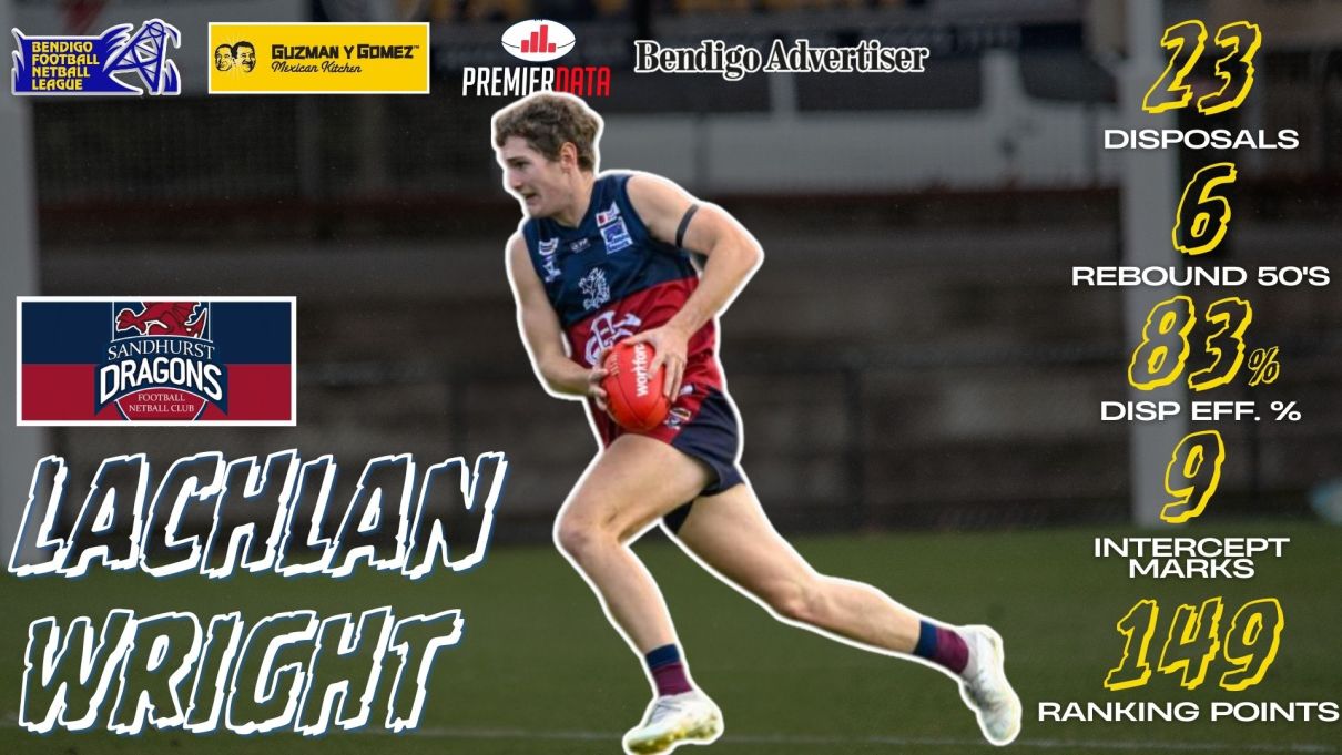 Lachlan was pivotal to the Dragons commanding victory over South Bendigo putting together an intercept marking clinic, pulling down 9 marks from opposition kicks. Wright leads the league with 26 intercept marks, more than DOUBLE anyone else