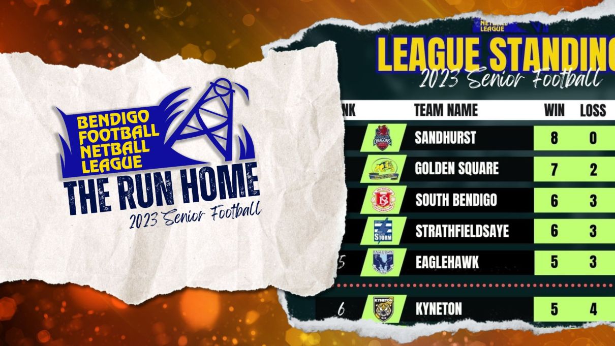 Run home– v Strathfieldsaye, a; v Castlemaine, h; v Eaglehawk, a; v Kangaroo Flat, h; v Kyneton, a; v Golden Square, h; v Sandhurst, a; v South Bendigo, h; v Maryborough, a.