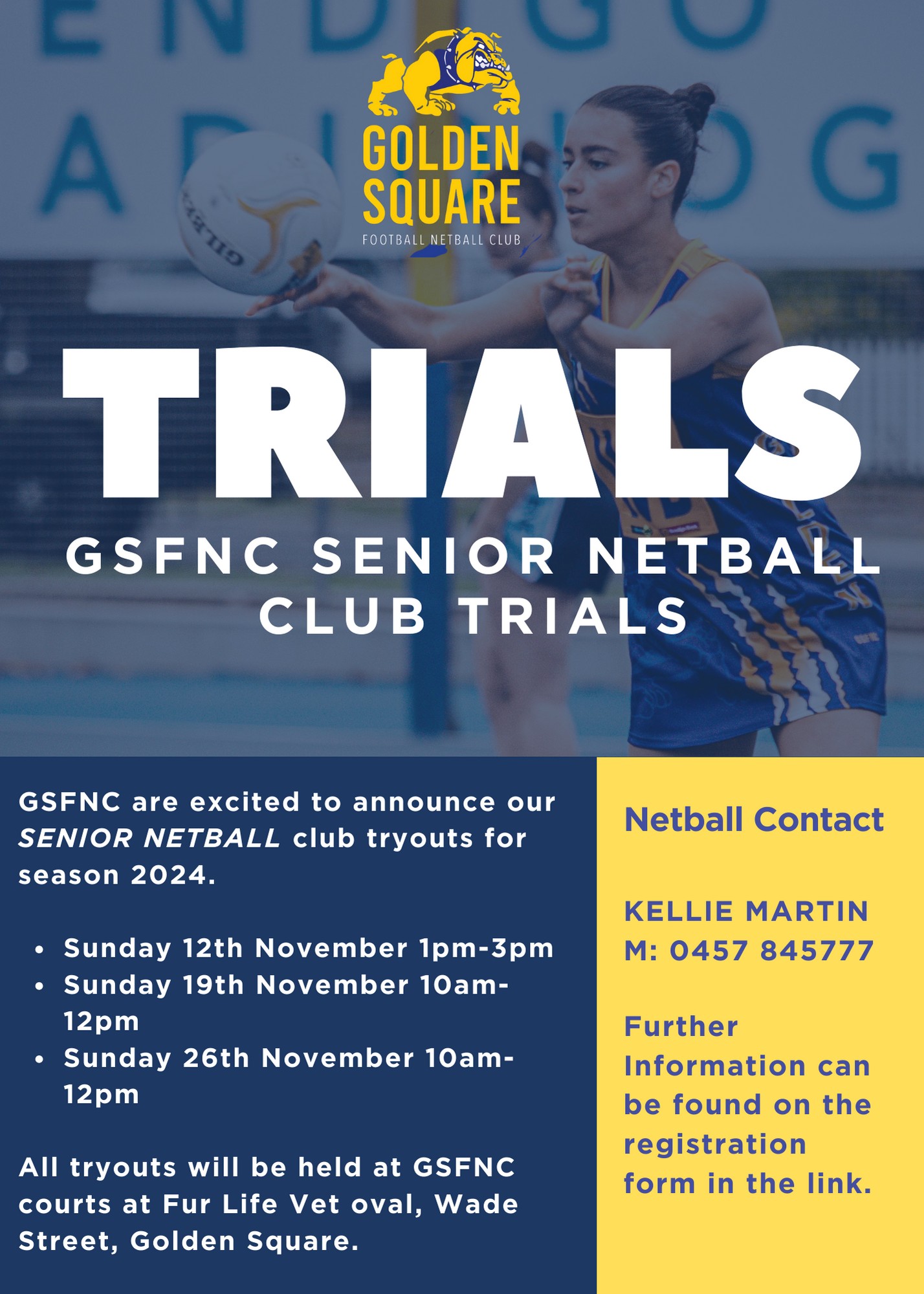 Current and future players must attend at least 2 trials to be eligible for selection. Further information please contact Netball Operations Manager, Kellie Martin on 0457 845777