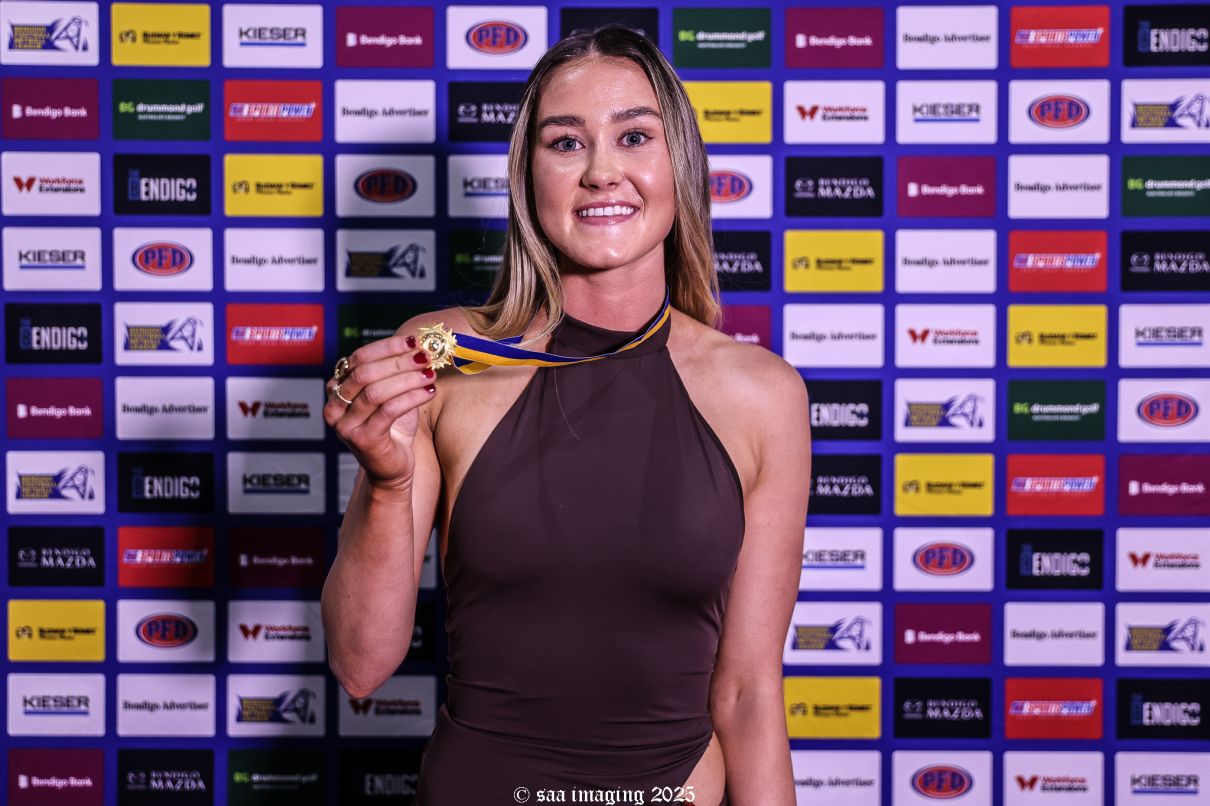 Players to round out the top six were Gisborne’s Zoe Davies and Kirby Elliott and Sandhurst’s Meg Williams, 12 votes; Strathfieldsaye’s Annie Hughes, Eaglehawk’s Allira Holmes, and Kangaroo Flat’s Ashley Ryan, 10 votes.