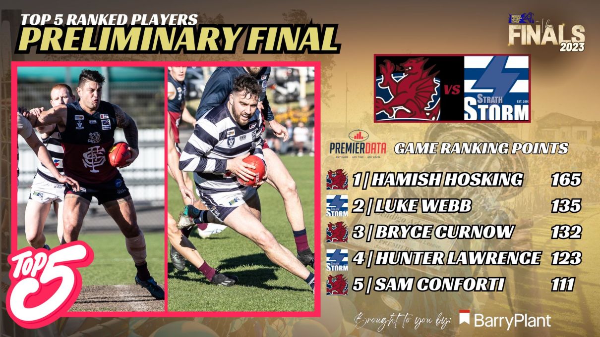 With thanks to Barry Plant Bendigo & Premier Data, let's compare the top 5 performers (ranking points) from last weekend's Preliminary Finals