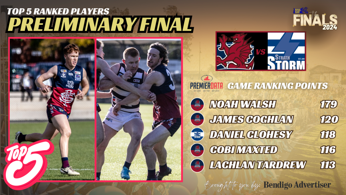 With thanks to Premier Data & Bendigo Addy Sport, compare the top 5 ranked players on the ground from the Preliminary Final