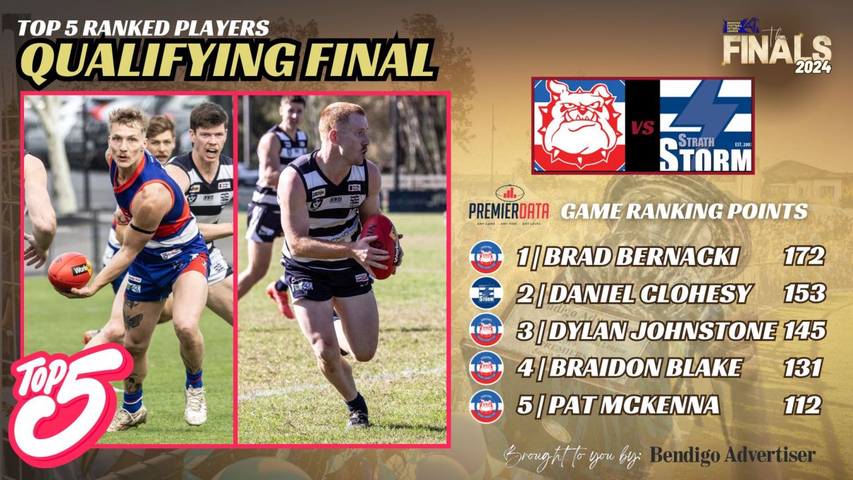 With thanks to Premier Data & Bendigo Addy Sport, compare the top 5 ranked players on the ground from the first week of the 2024 Finals Series