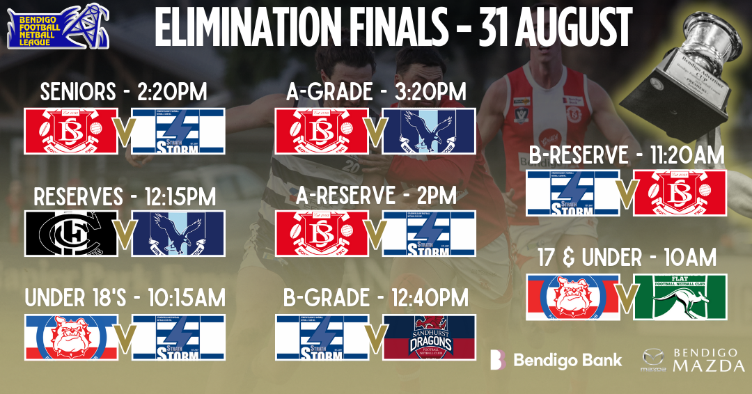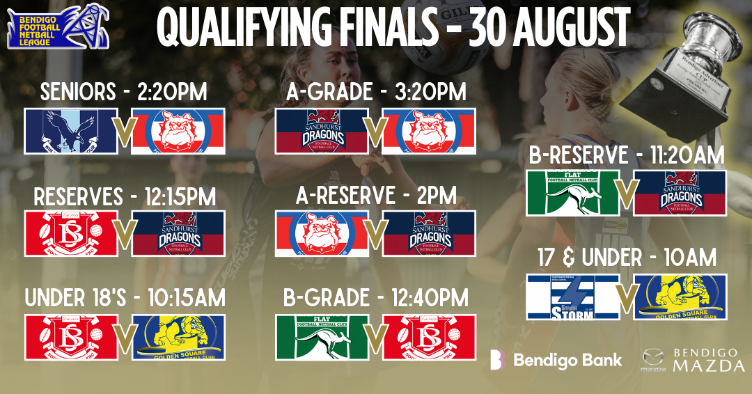 Following the 2025 Home & Away season, the Bendigo Bank Bendigo Football Netball League Finals will commence this weekend at the QEO. The schedule and fixture will be as follows: